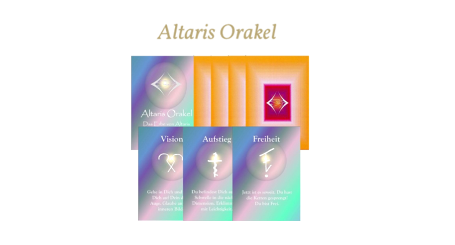32 lichtvolle Orakelkarten (8 x 12 cm) aus Altaris auf Atlantis – inklusive Begleitbüchlein mit passenden Engelbotschaften zu jeder Karte.